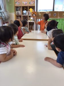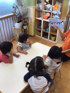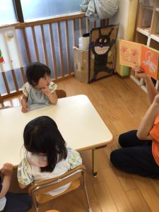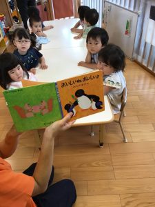 子どもたちが興味を持って聴けるように、声のトーンを変えてみたり、絵本をめくるタイミングを見計らったり・・