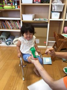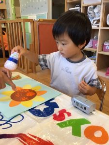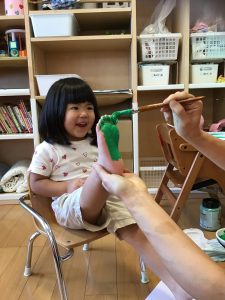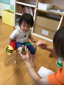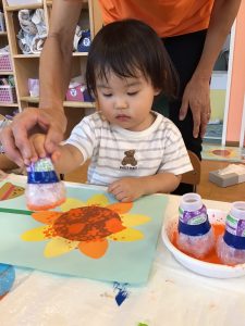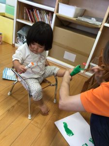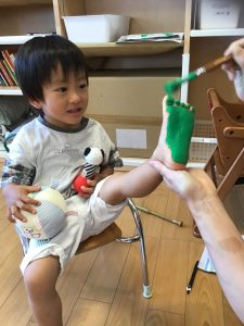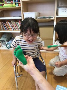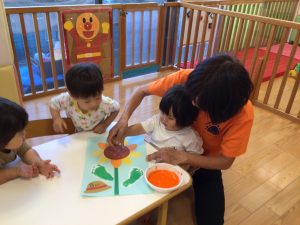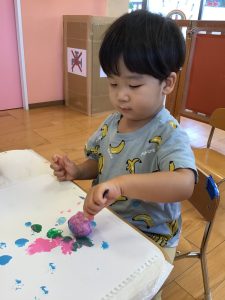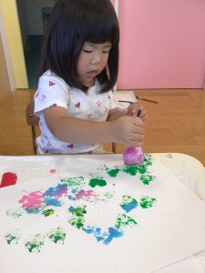 いちごぐみさんとりんごぐみさんは、プチプチのスタンプ押し![]()