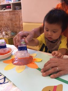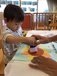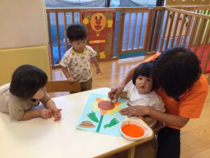もう一枚紙をもらってもペタペタ楽しんでいましたよ![]()
