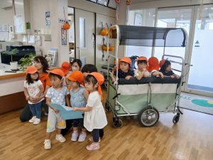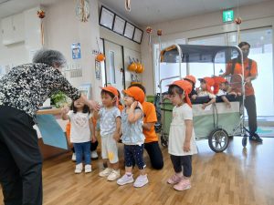 ハロウィンの飾りを頂き、大喜びの子どもたち🎃