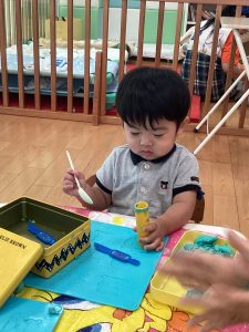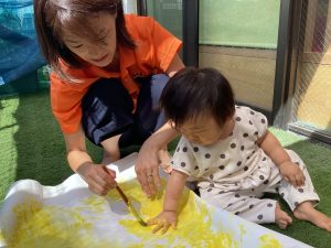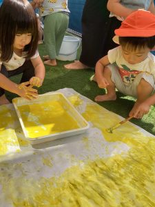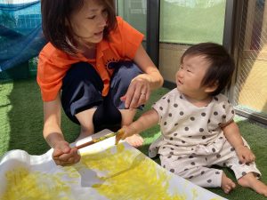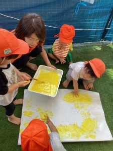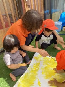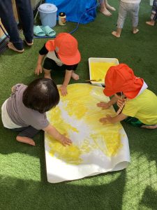 先日は園庭で絵の具も楽しんだよ🎨