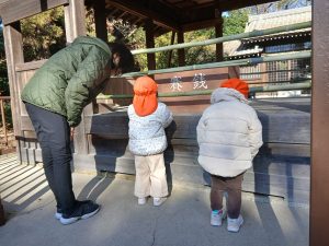 2歳児さんは投げ銭にもチャレンジしましたよ。