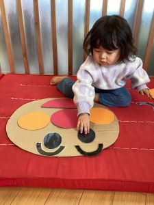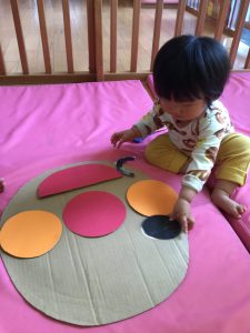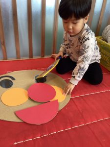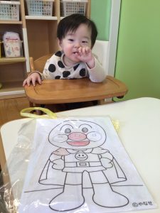 0歳児さんたちも、かわいいアンパンマン凧のできあがり![]()