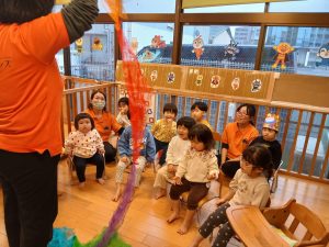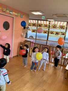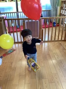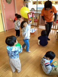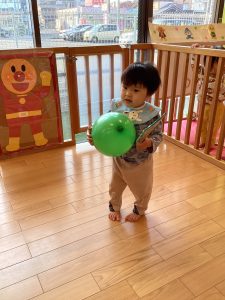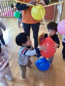 0、1歳児さん、、風船が怖くて尻込みしてしまう子もいましたが、、笑