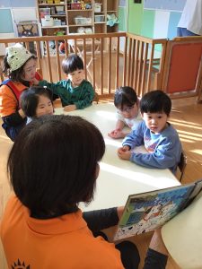 ドキドキする場面では、保育者のそばに寄ってくる姿もあり、物語の世界を感じながら楽しむ様子が伝わってきました![]()
