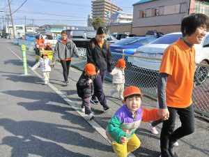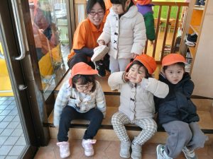 冷たい風にも負けずに「お外に行きたーい」と子どもたち![]()