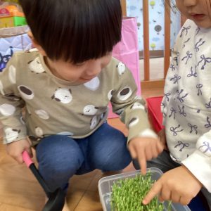 豆苗をカットして二毛作の様子を子どもたちと一緒に観察しましたよ![]()