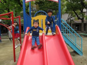 公園では、遊具で遊んだり、お砂場遊びをしたり、ブランコに乗ったり・・・