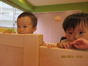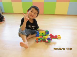 ブロックで遊んだりと保育室での活動を楽しんでいます![]()