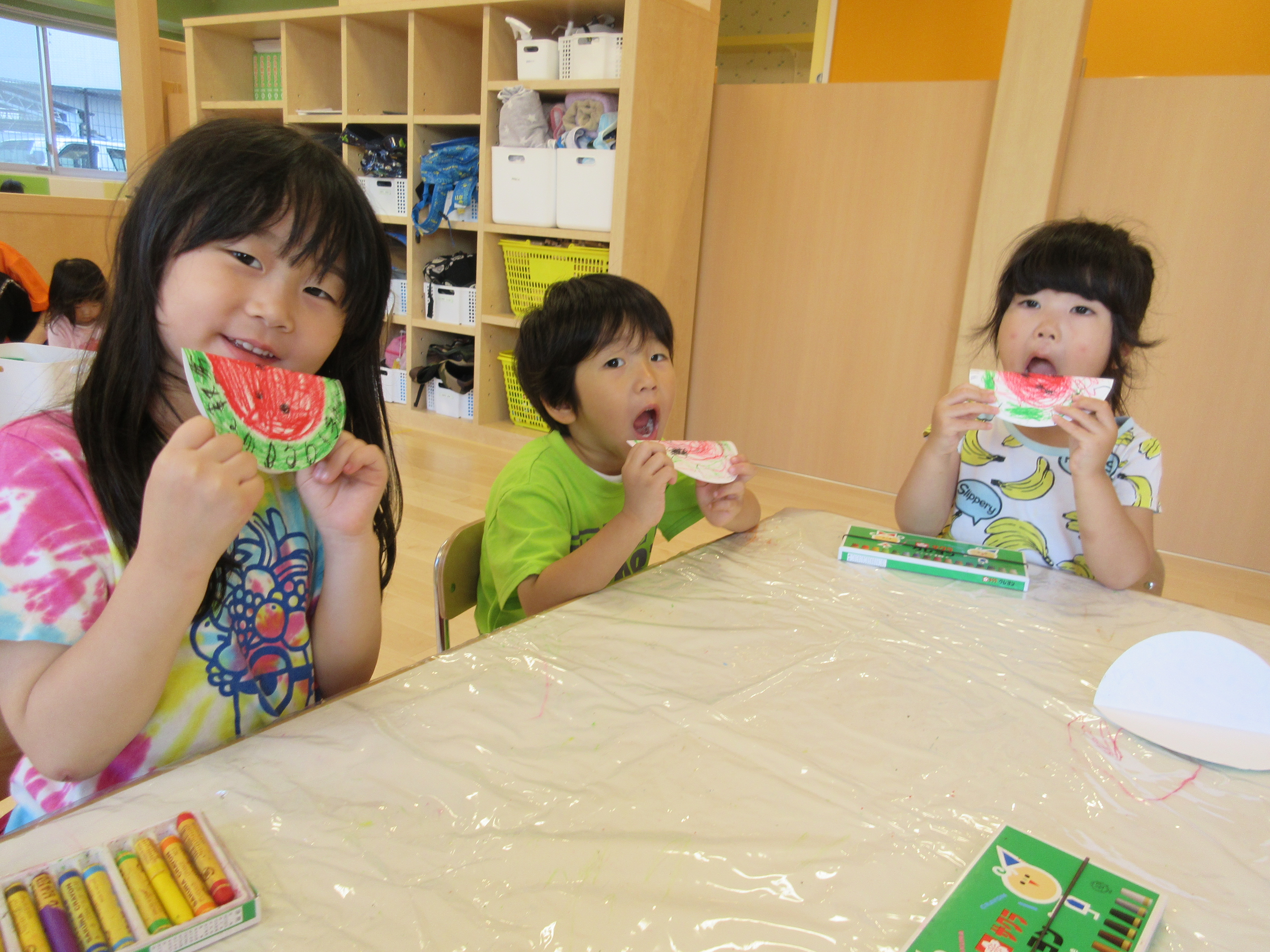 製作を楽しんで取り組み、とっても楽しんでいました。出来た作品と一緒に「いぇい」「あ~ん」パクッ![]()