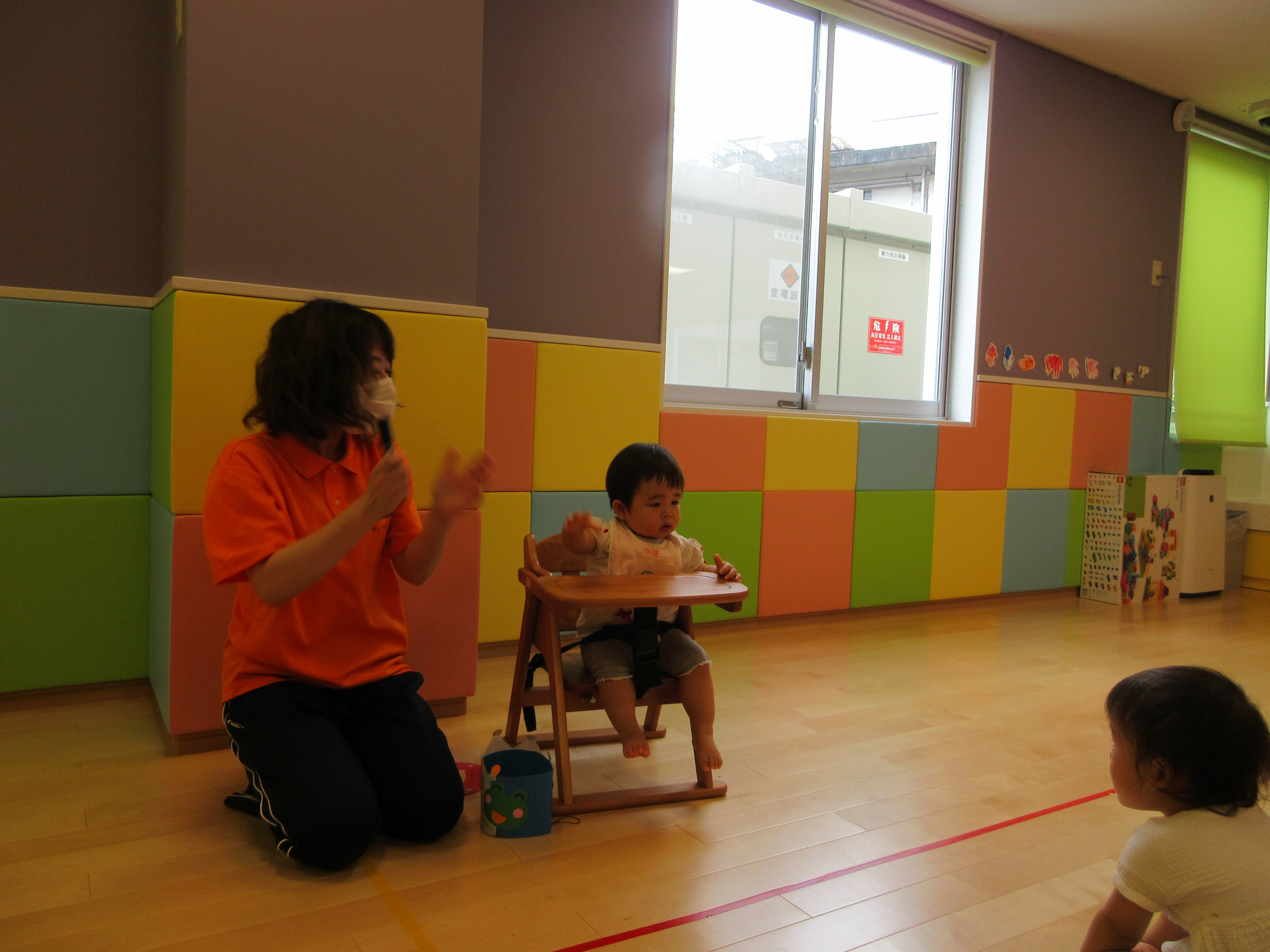 皆の前で緊張をしながらも泣かずにいすに座っていました![]()