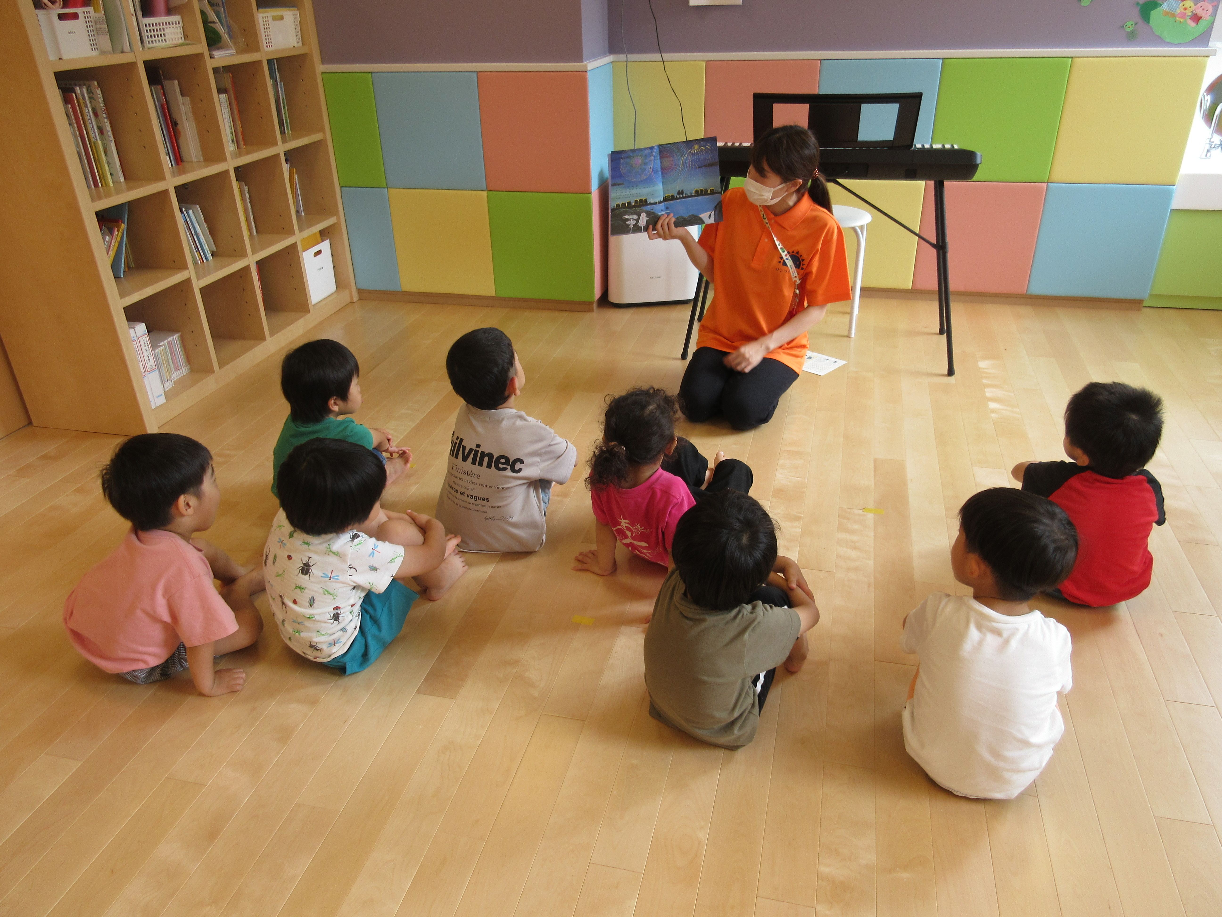 「こっちは〇〇」などこどもたちは絵本の絵にしっかり興味津々![]()