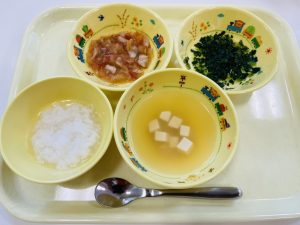 粥 味噌汁 白身魚と野菜のくず煮 ほうれん草のお浸し