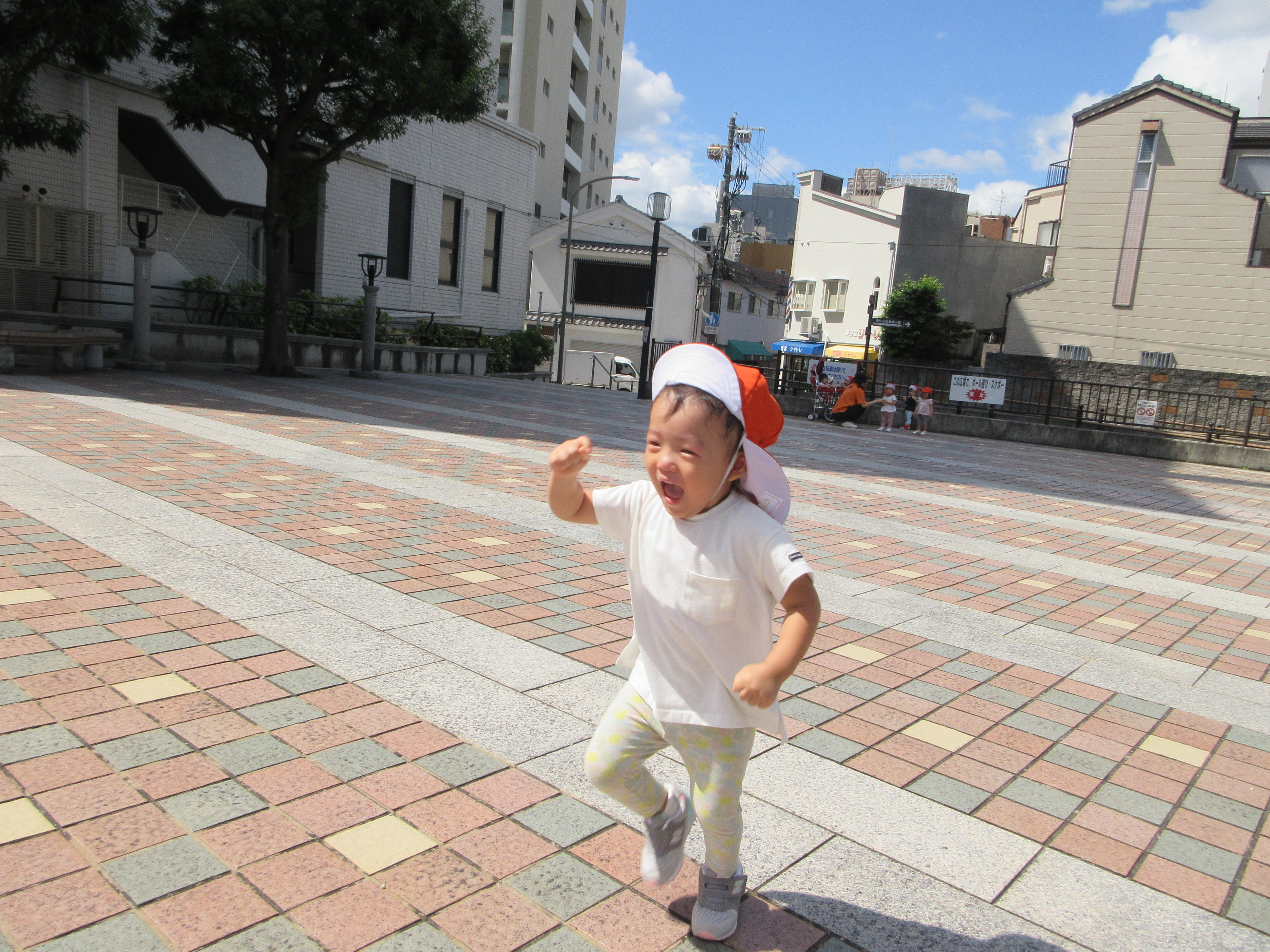 手を振って、保育士の方へ頑張るお友だち( *´艸`)