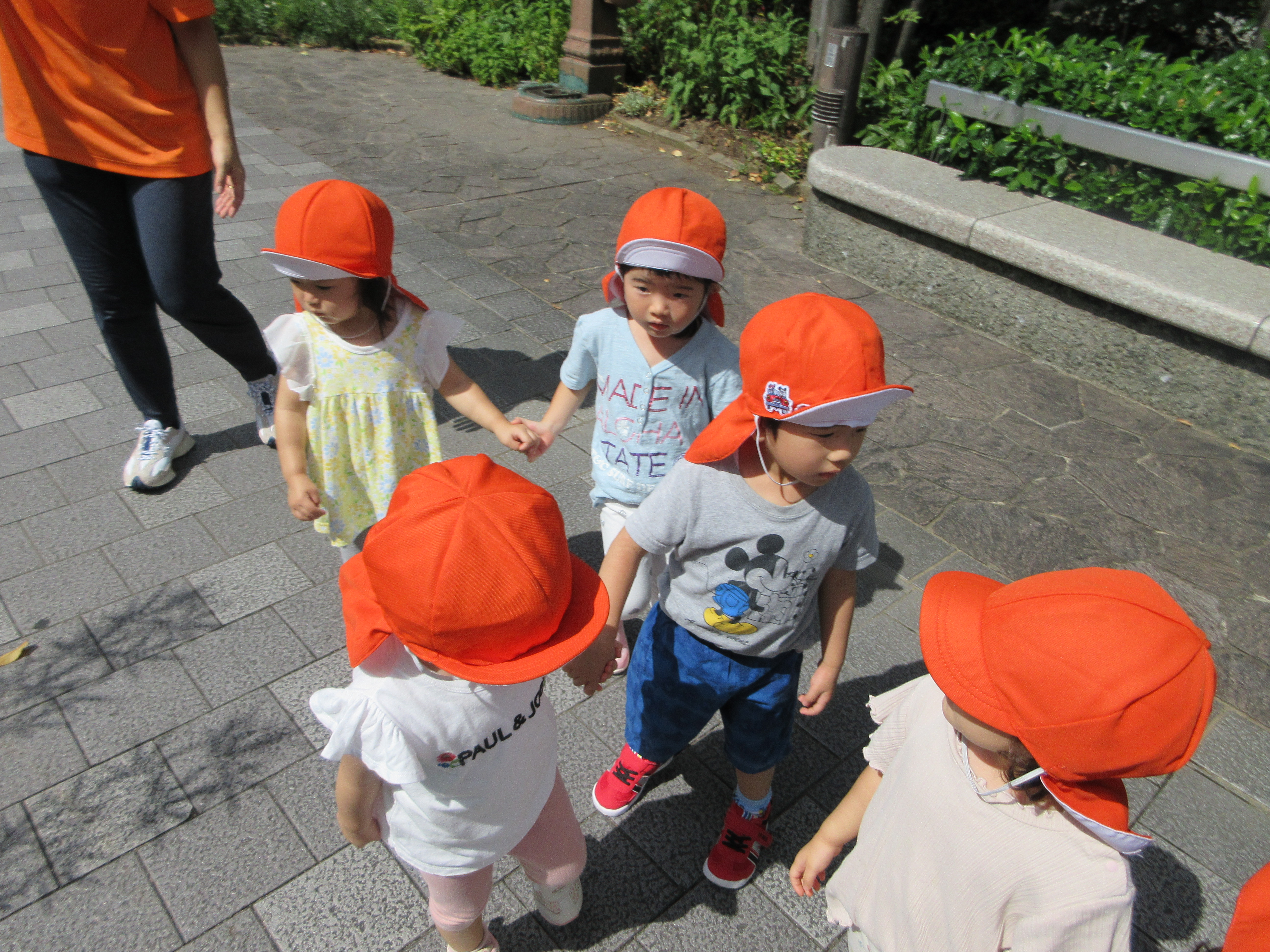 保育士の話を聞いて、交通ルールを守ったりながら…あちこちに興味津々!見つけた物を伝える事を楽しんでいます![]()
