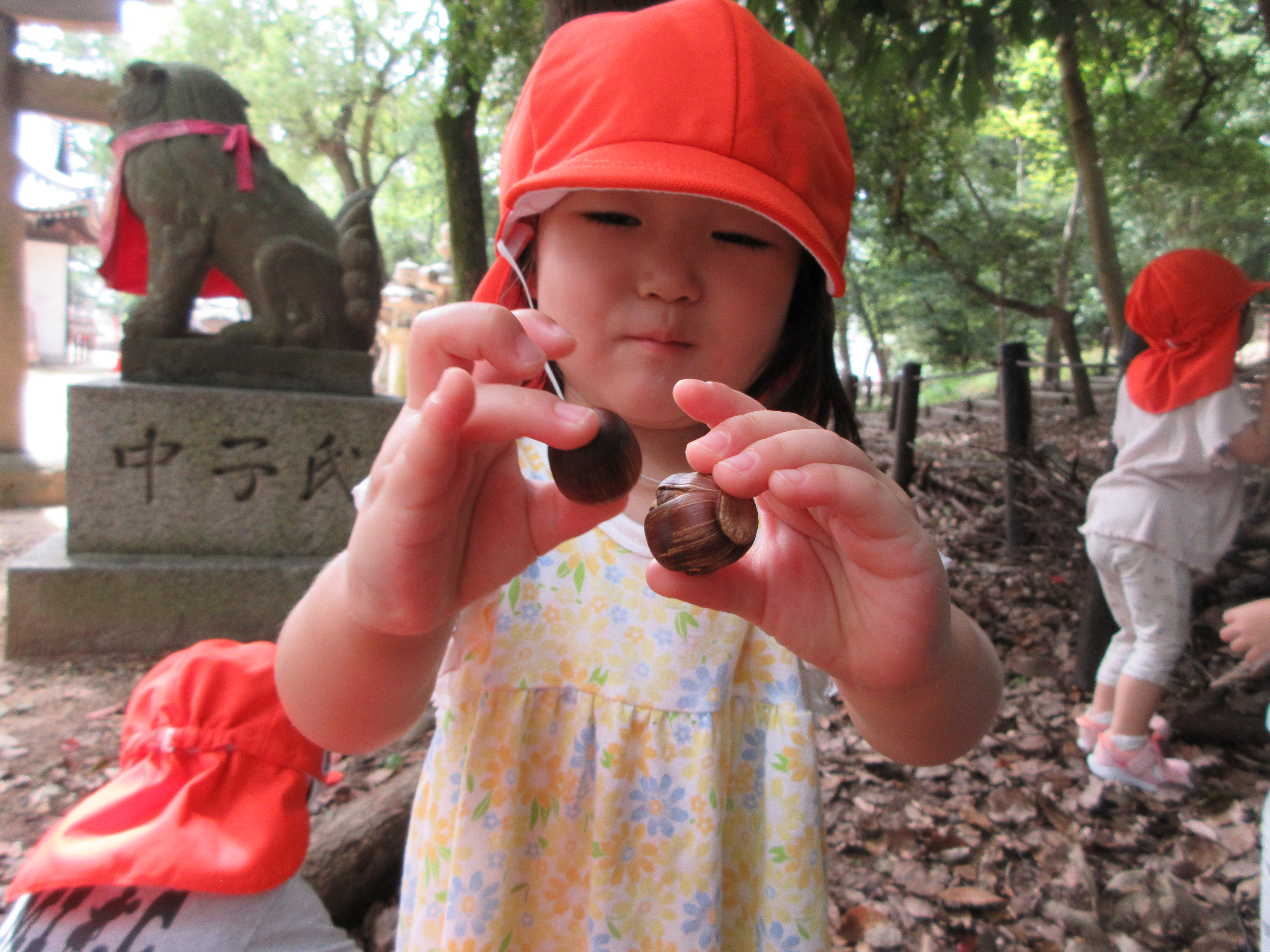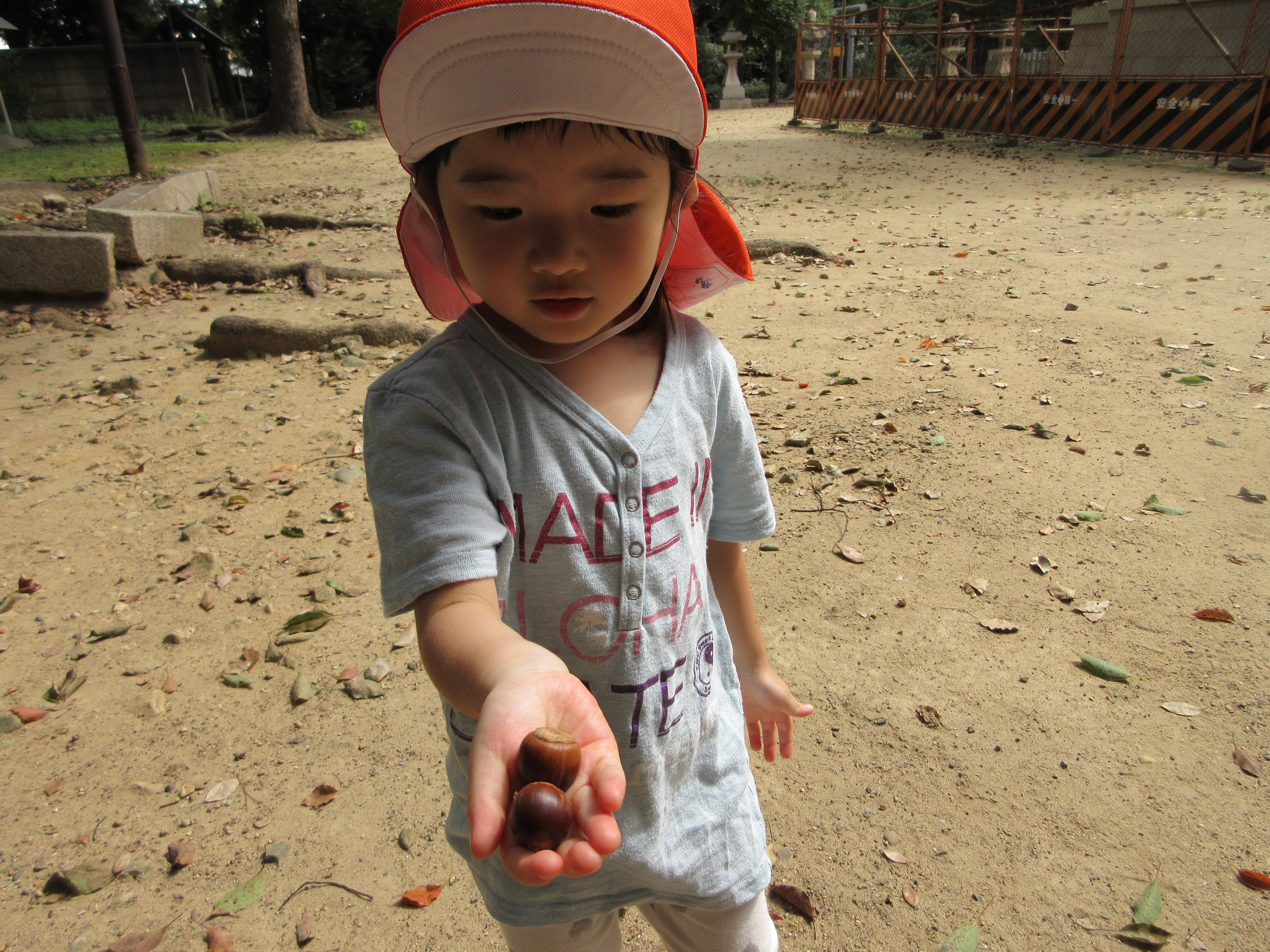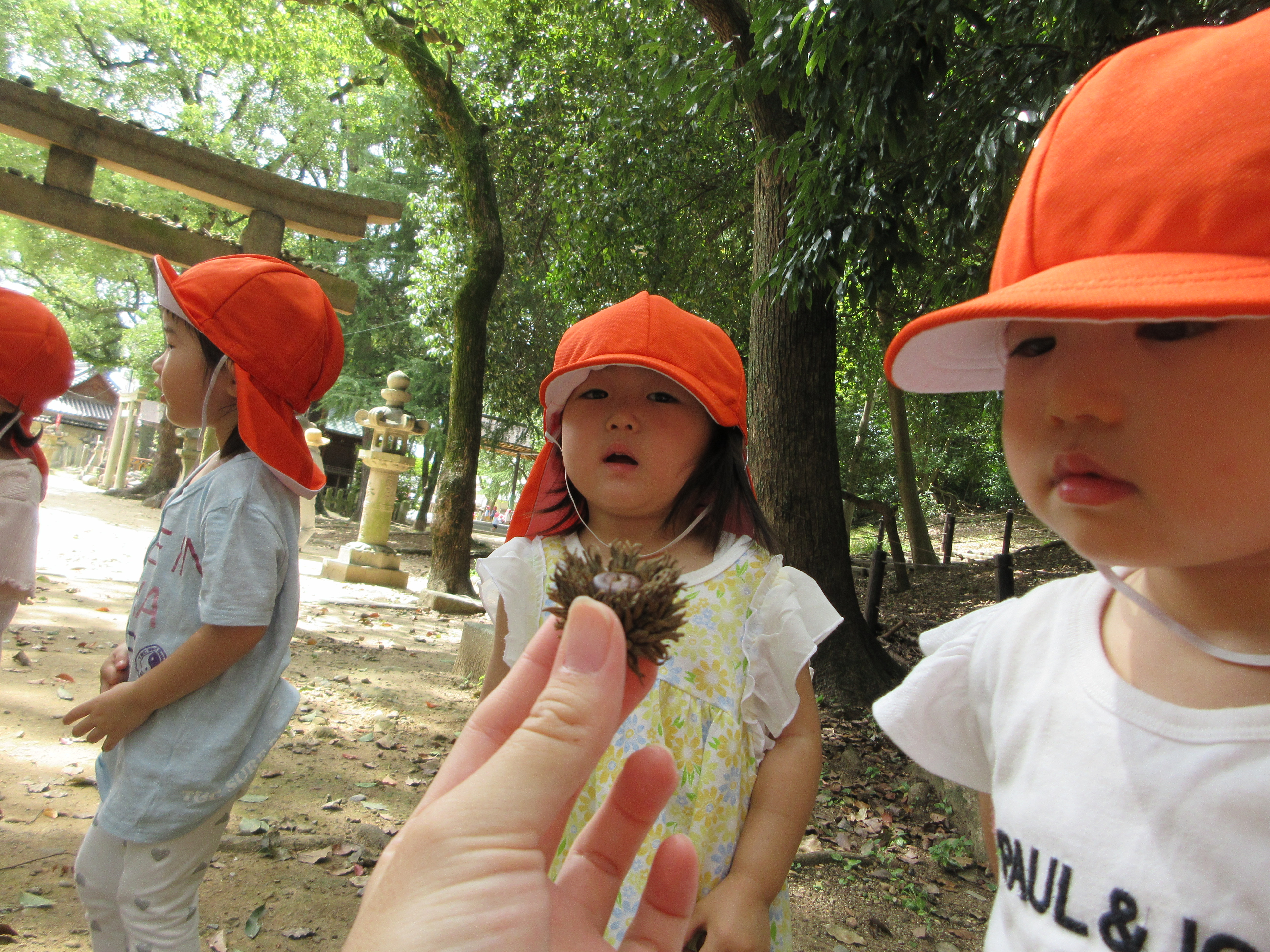 どんぐりのぼうしの「とげとげ」をじっと見つめる子どもたち(*´ω`*)