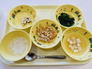 ※ほうれん草だけの和え物は、残食が多くなってしまいますが、「ほうれんそう食べれたよ~」と言う声も聞こえ、苦手なものもチャレンジして頑張って食べていました!
