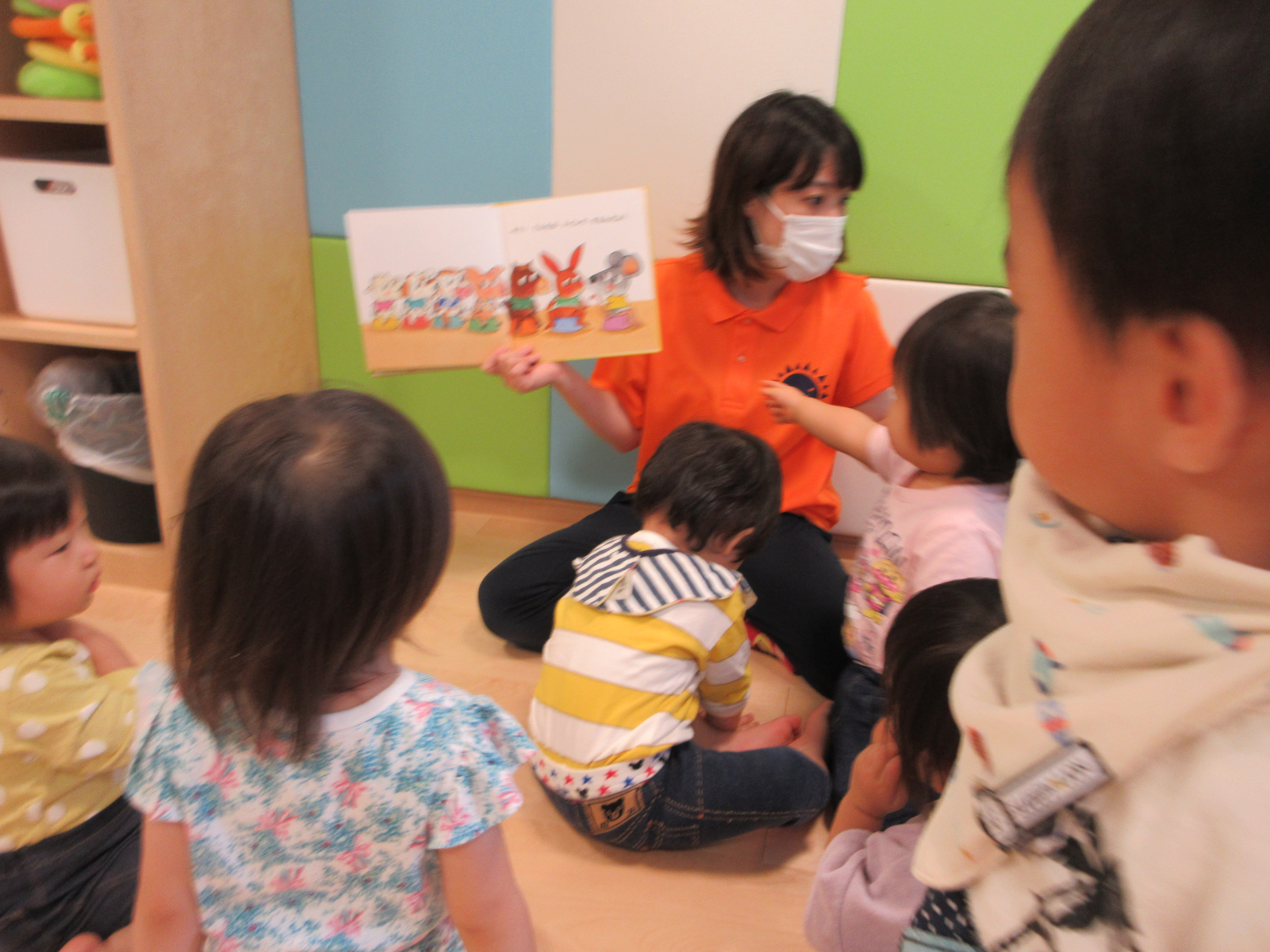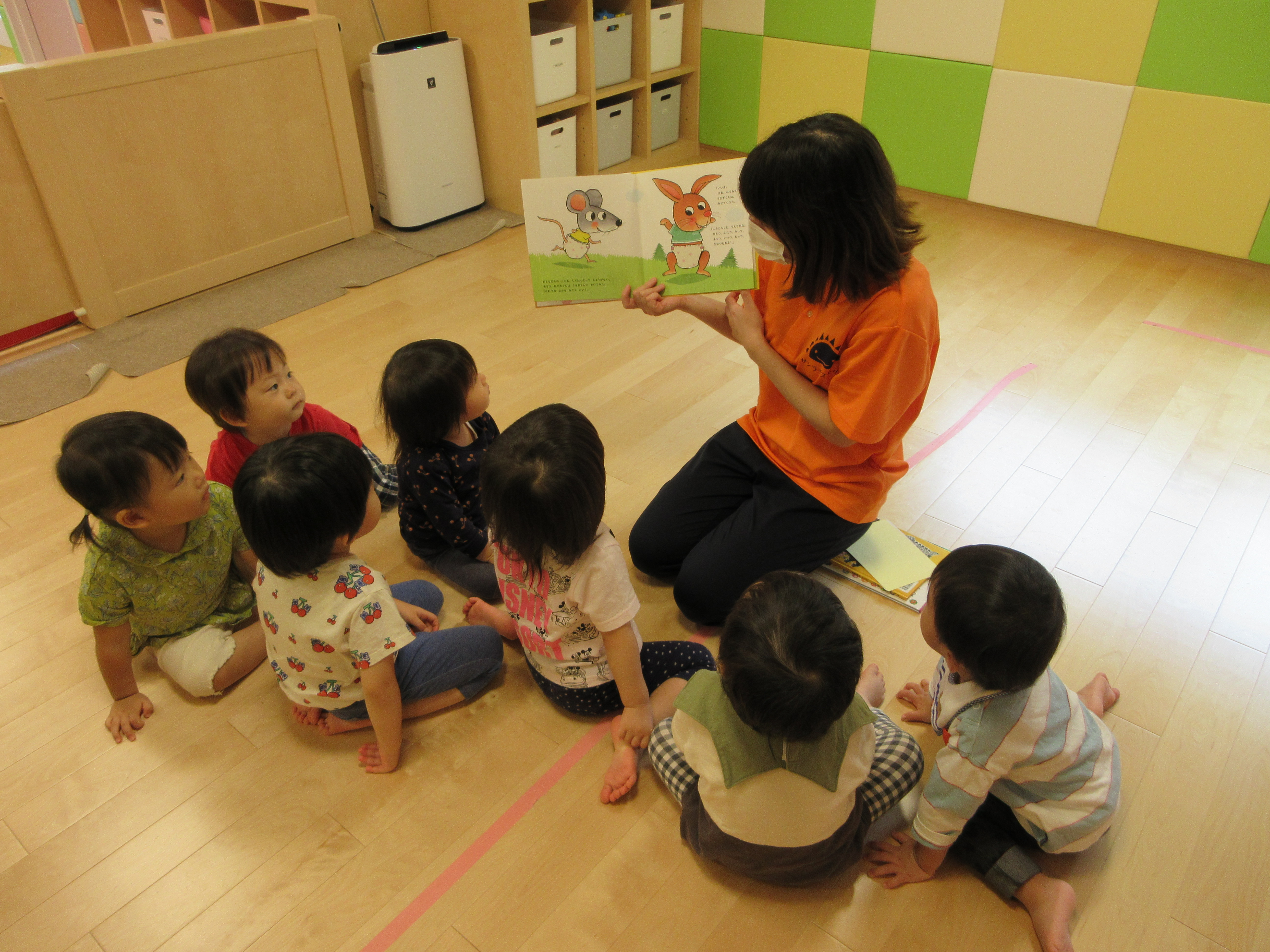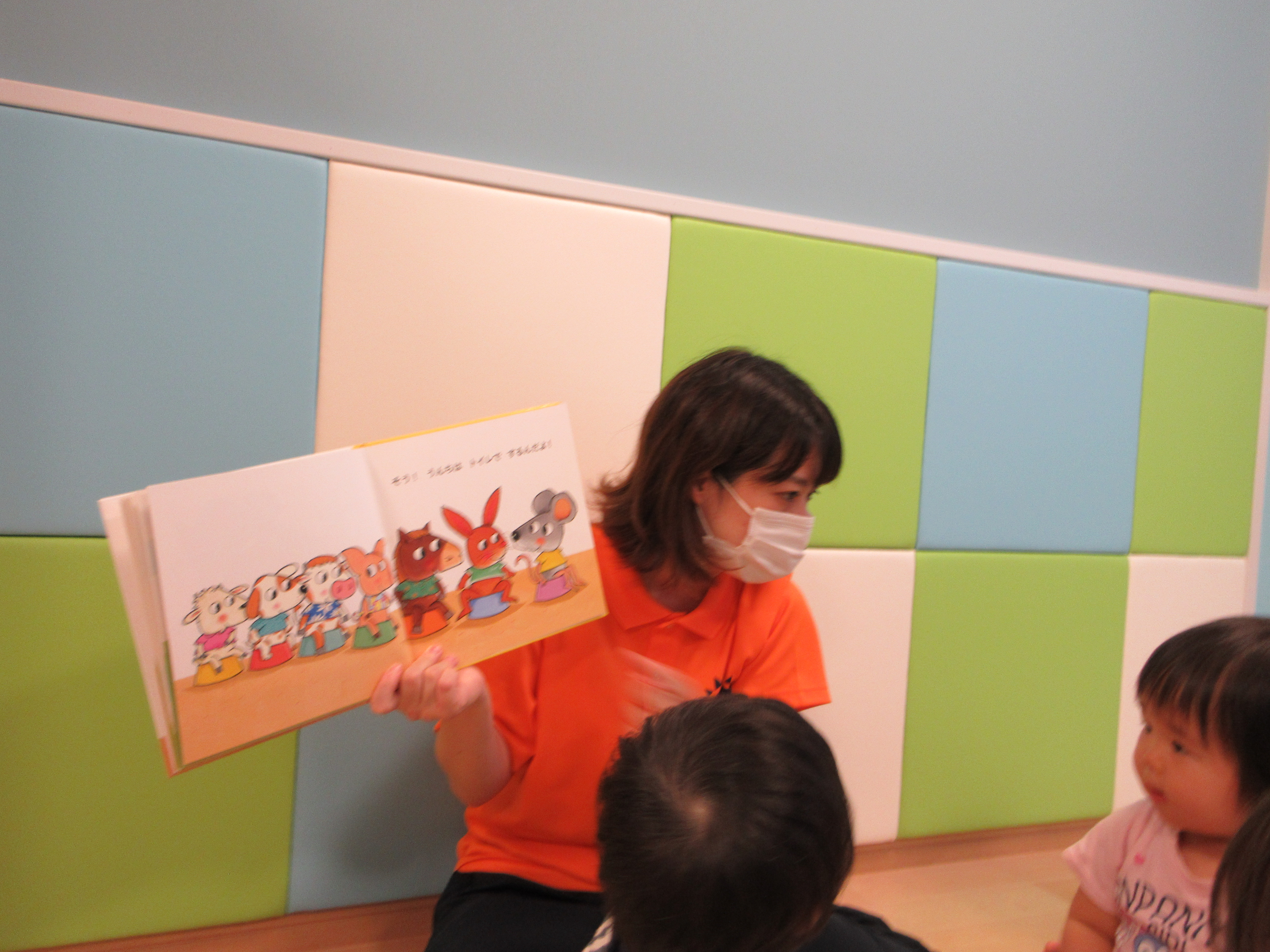絵本の中で…ねずみ君がみんなにオムツの中を見せてもらいます。