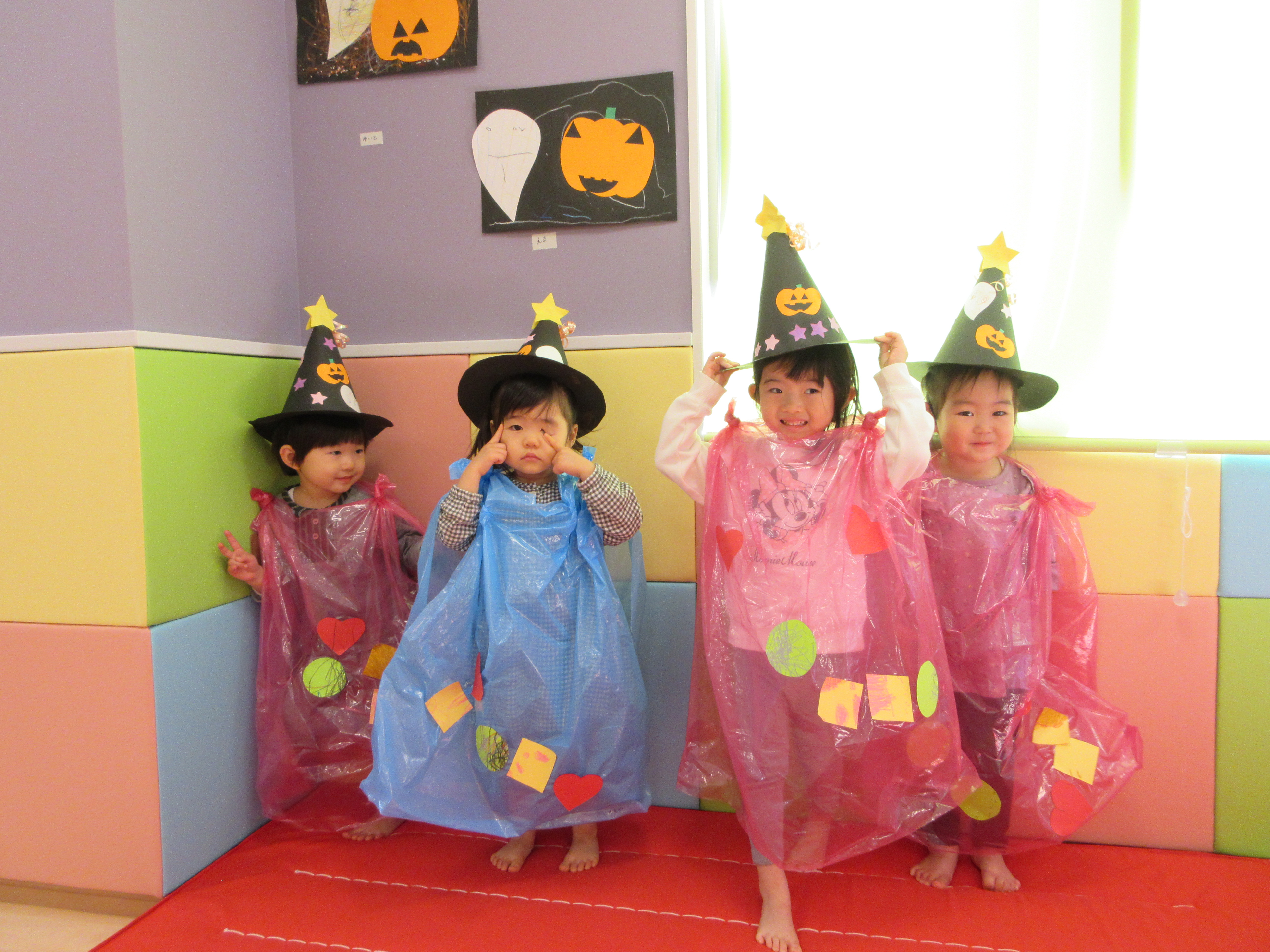 楽しみにしていたハロウィン会です。事前に衣装をみんなで作ったので…みんなとっても楽しみにしていました?