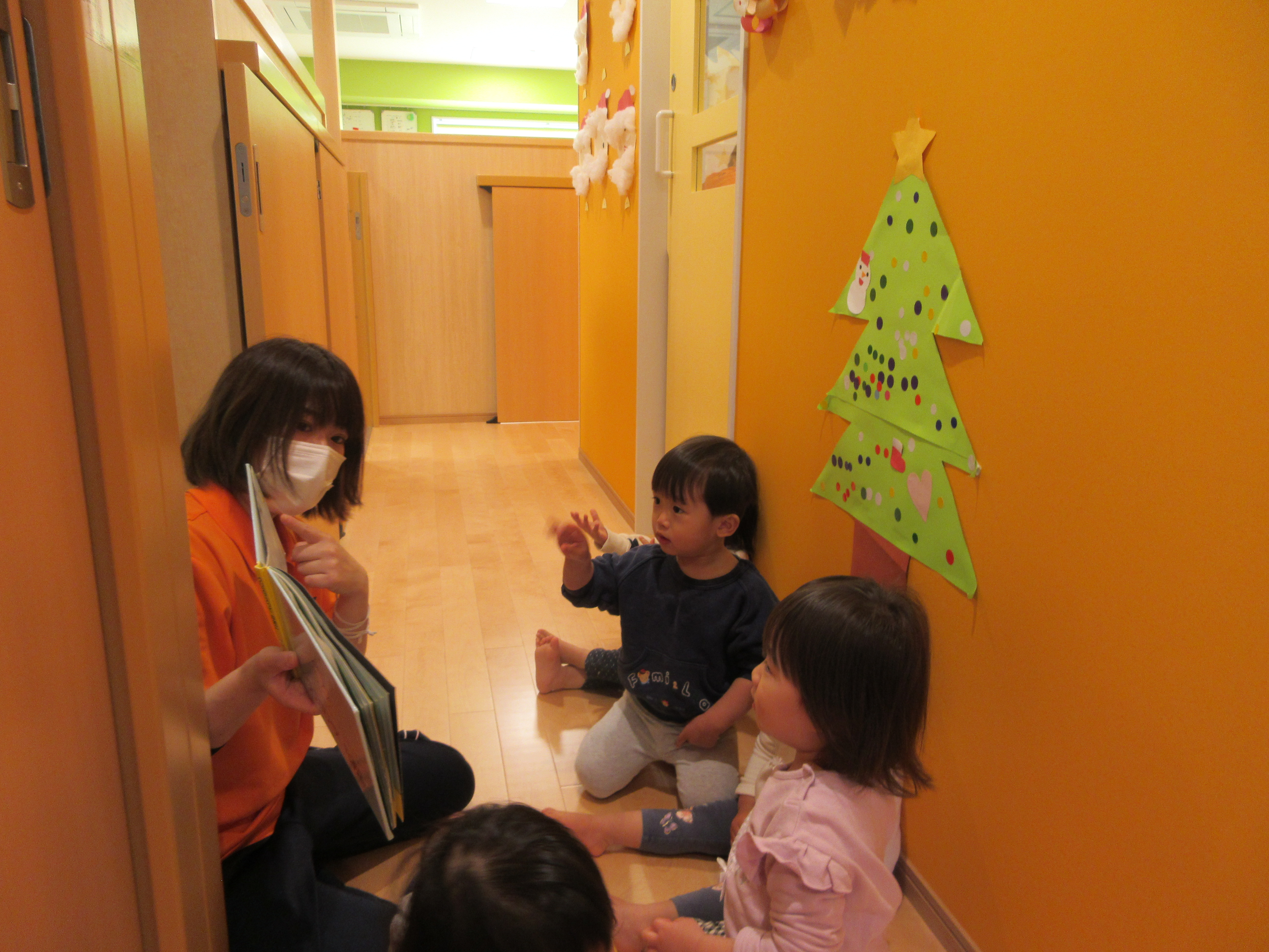 絵本にサンタさんが出てくると、壁にみんなが作ったサンタさんをみて…