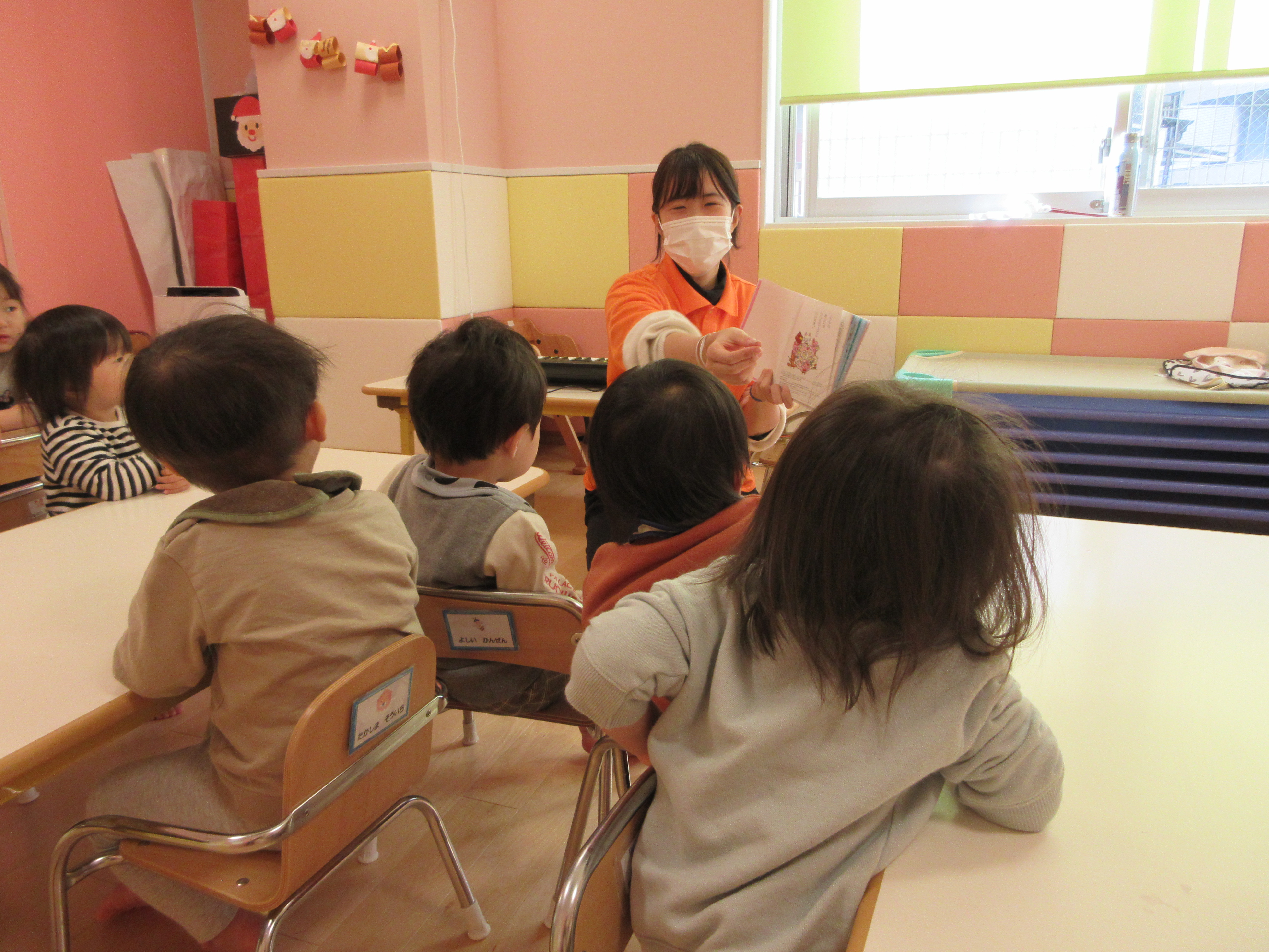 サンタさんに興味を持って楽しんで聞くこどもたち![]()