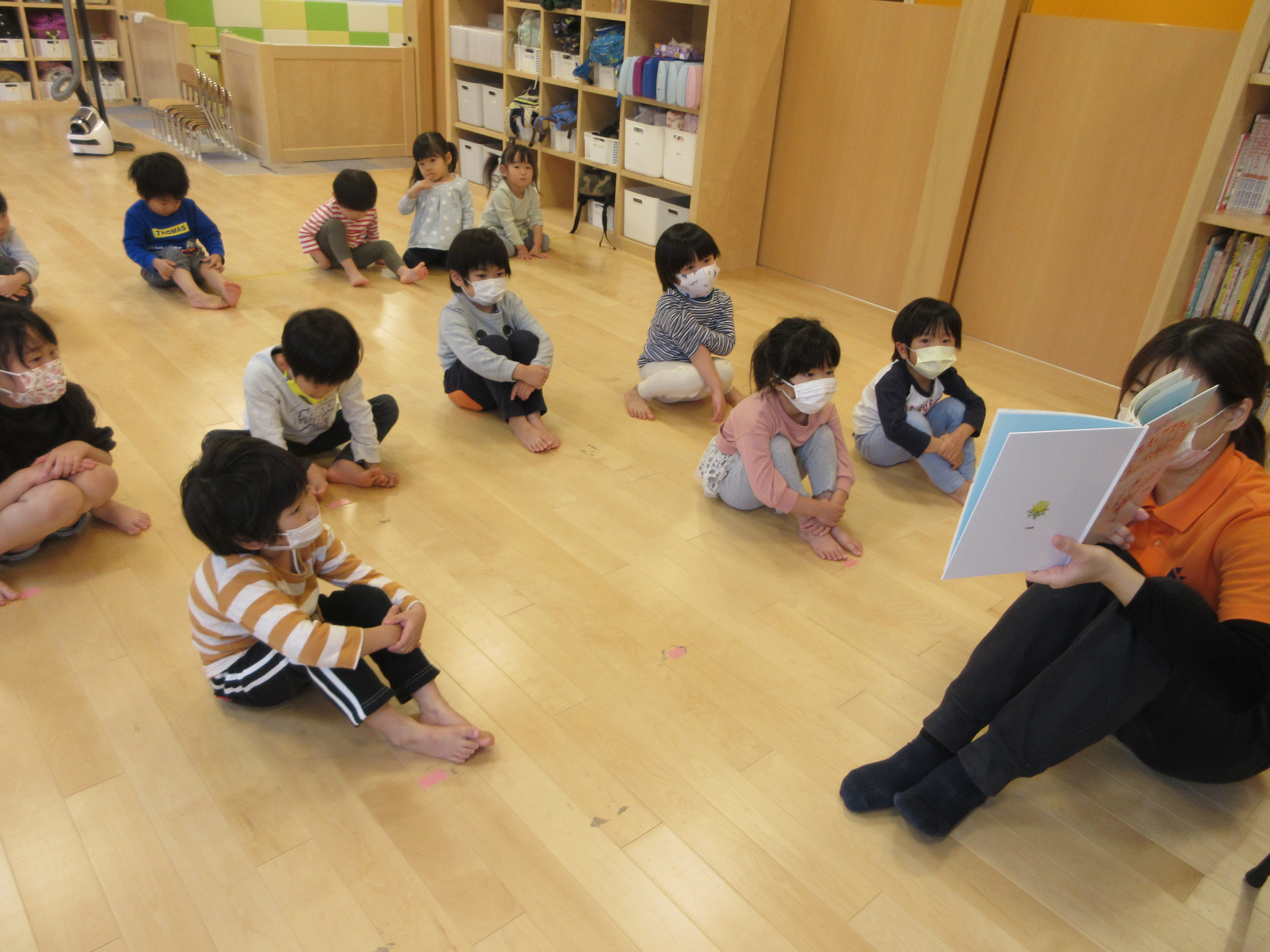 一つの絵本の中で子ども達も、もう一度自分に重ねながら…ねずみのりんと一緒に体験している様子でした。