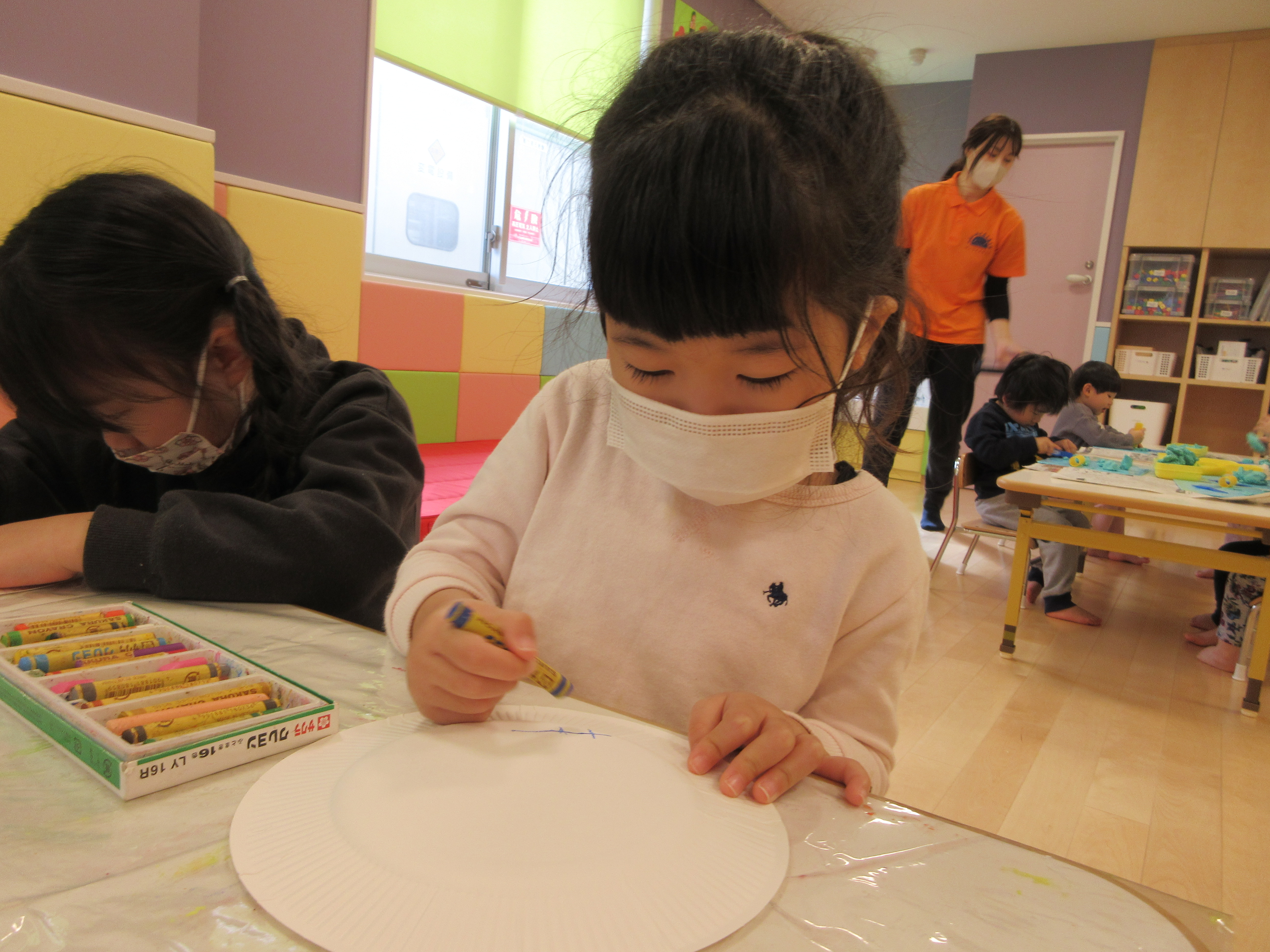 お部屋で製作をしているクラスが多く、2月になると節分の日。節分=鬼の日