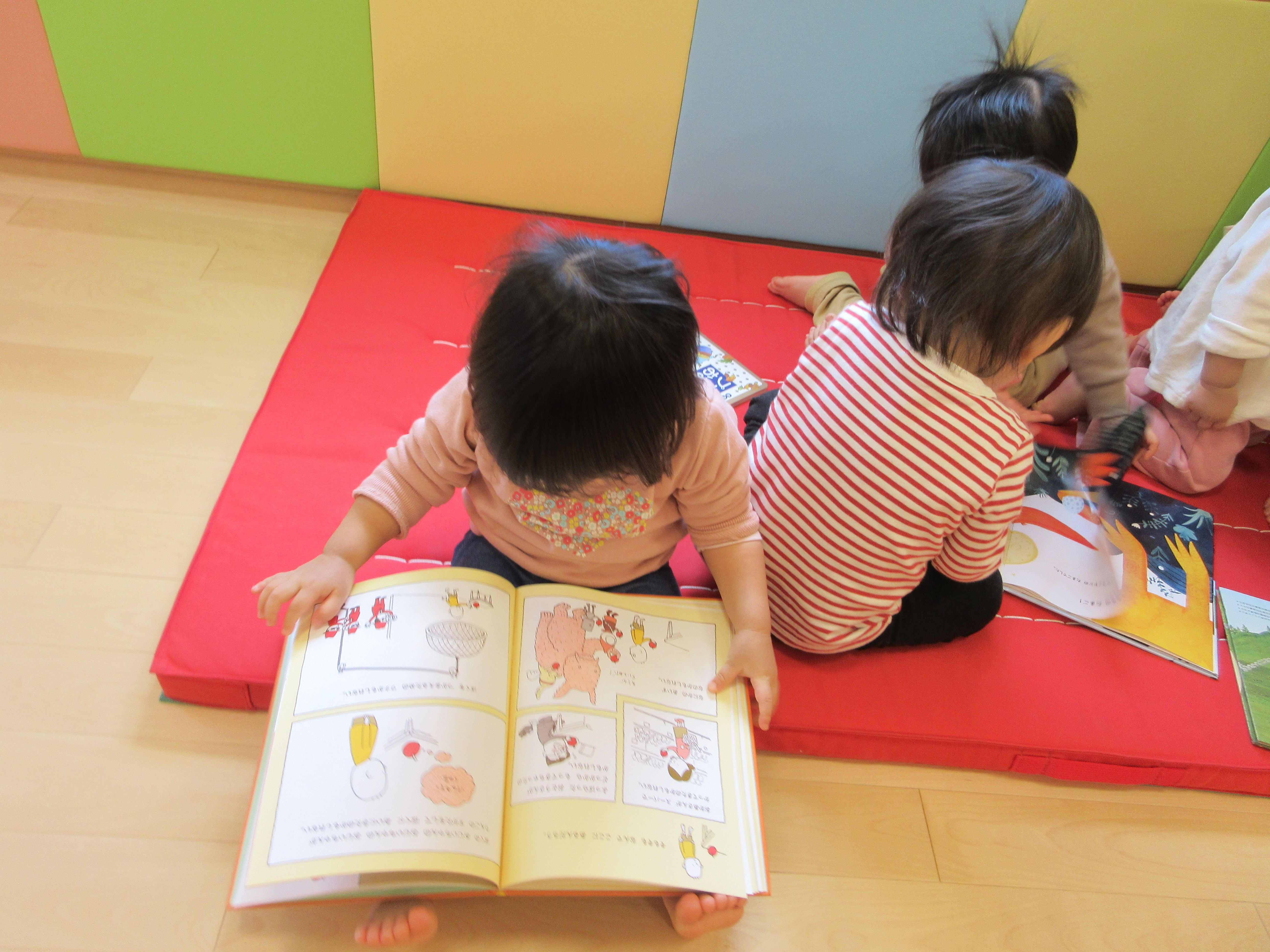 乳児さんが絵本を読んでいる姿をたくさんご紹介しました(*^_^*)