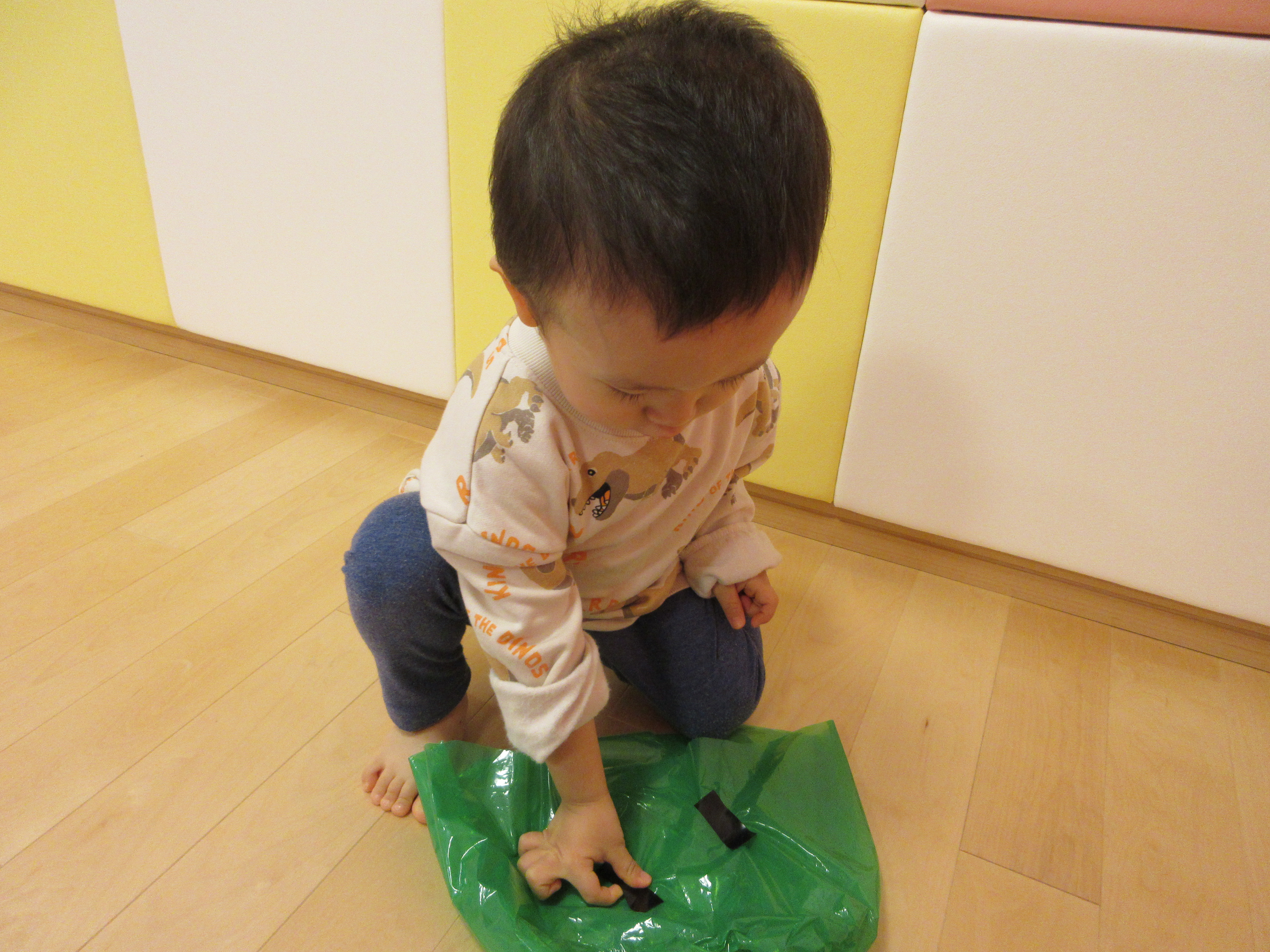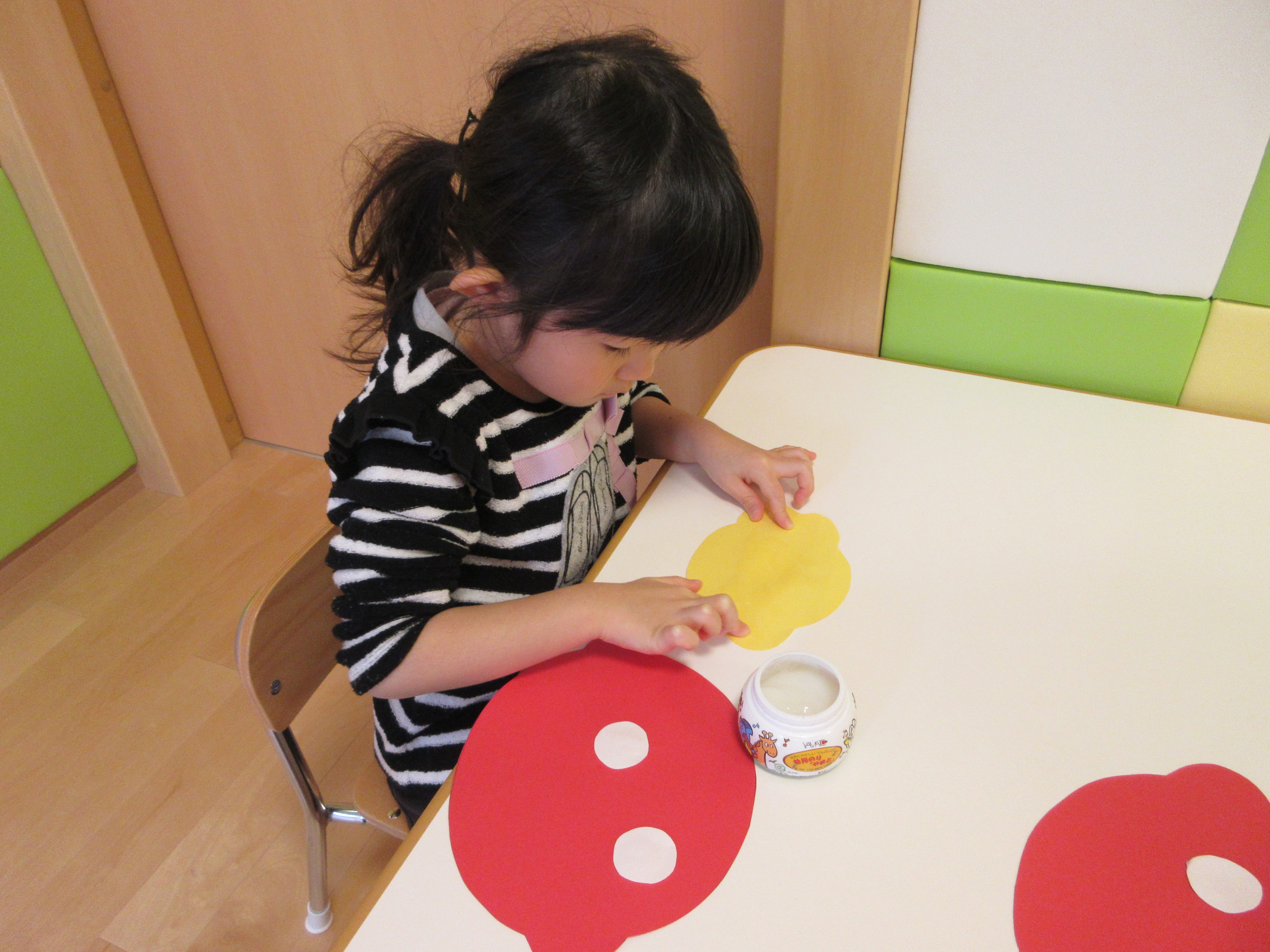 自分で好きな色を選んで、テープをぺったんして楽しんでいます。