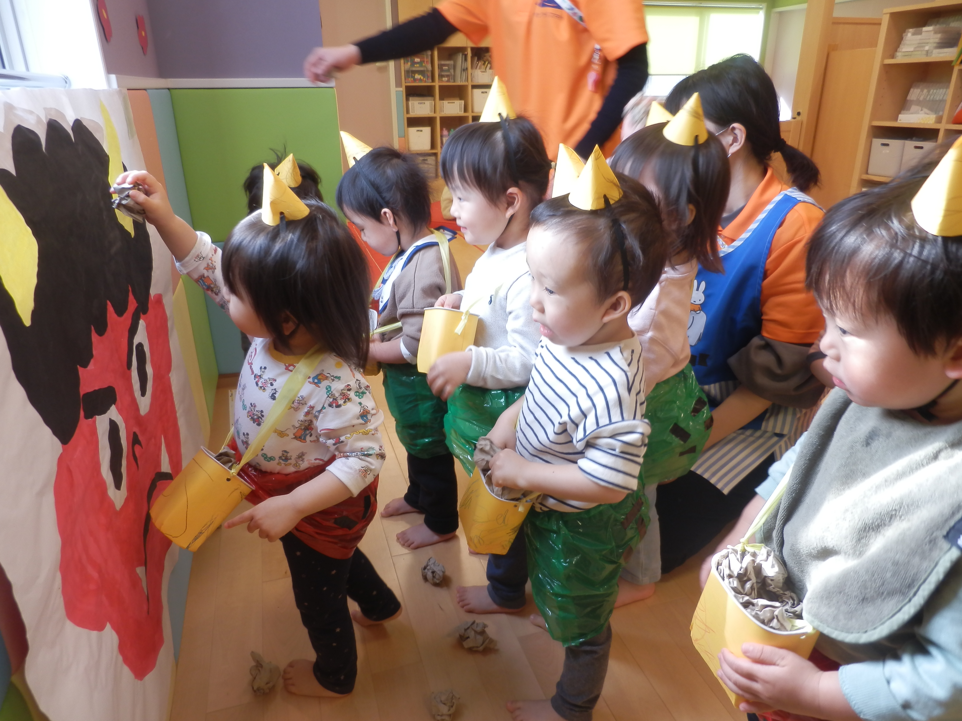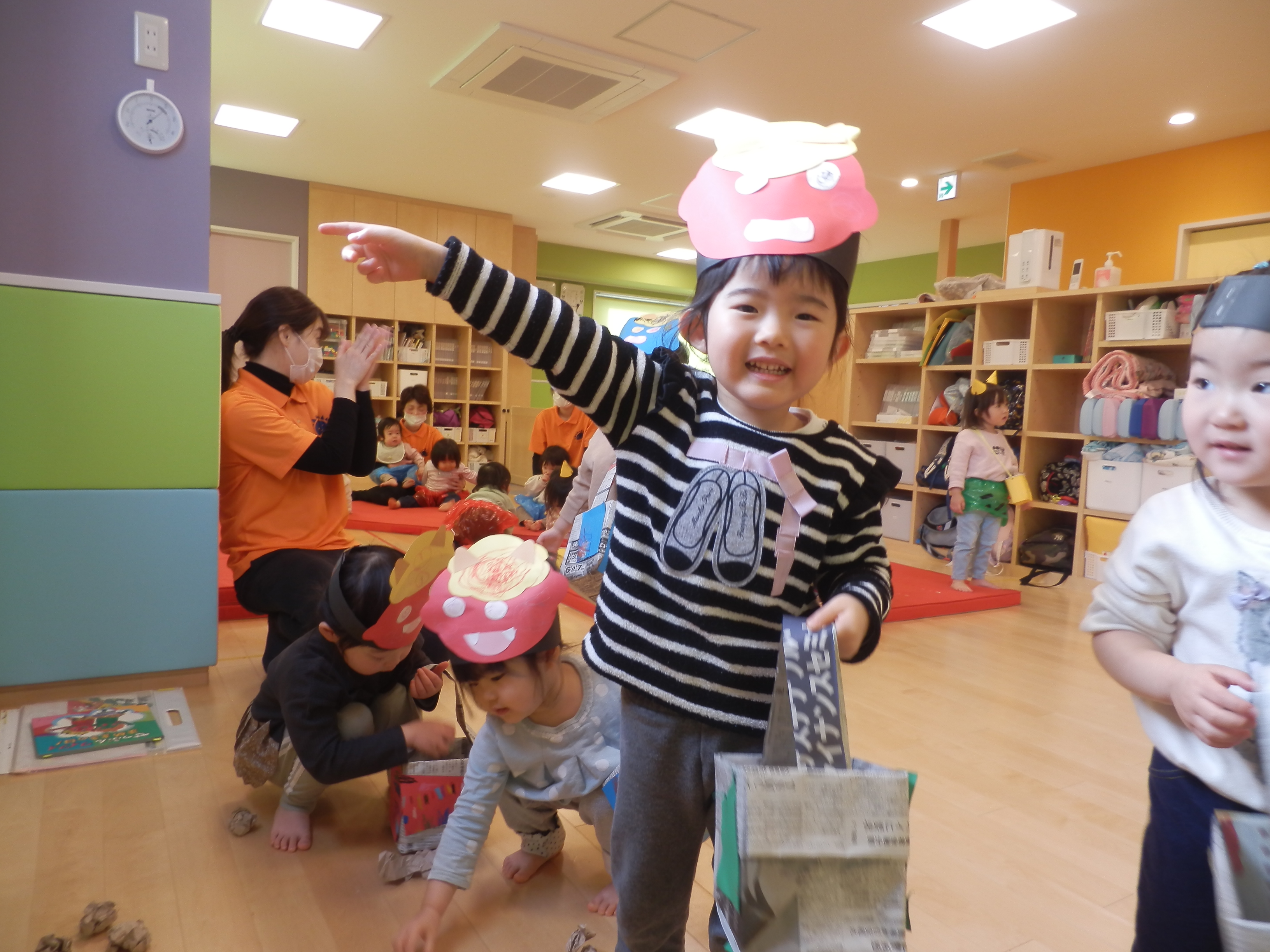 節分の日の様子です!!大きな鬼にも…負けていません。