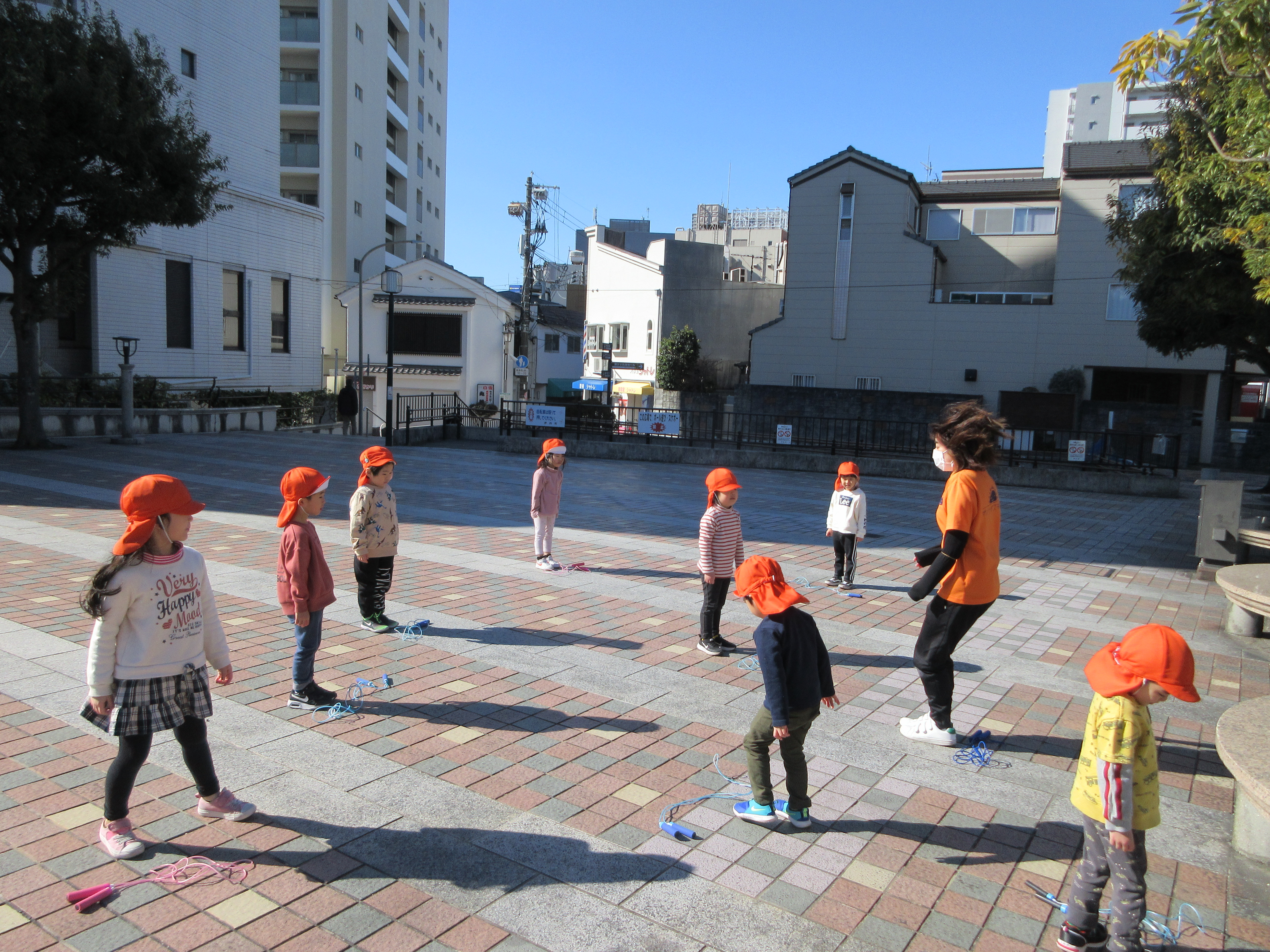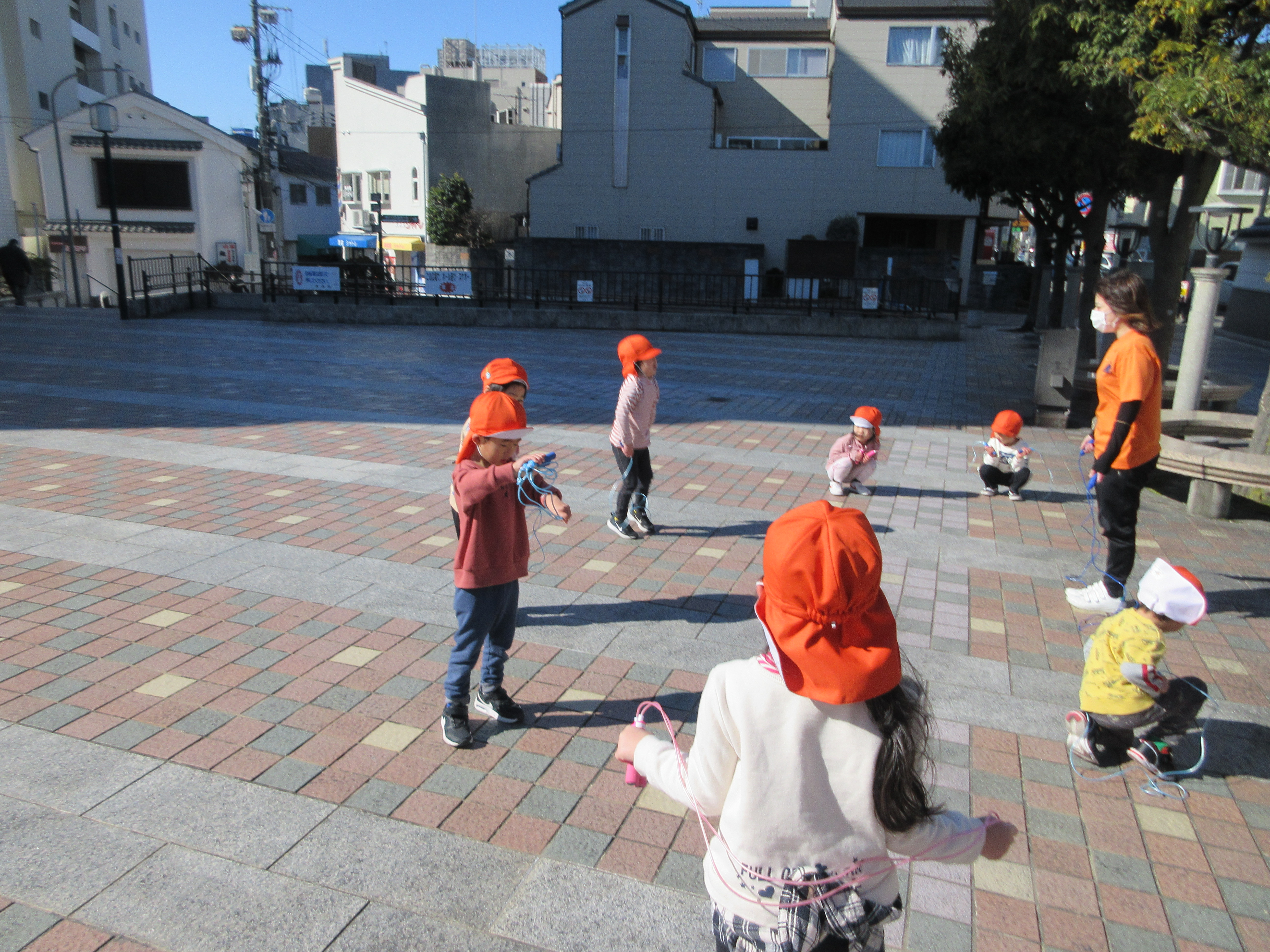 寒さに負けずに元気いっぱいの幼児さん( *´艸`)寒さよりもなわとびを頑張りたいという意欲が強いです