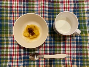 今日のおやつは、食べ慣れないさつま芋のオレンジ煮でしたが、頑張って食べてくれて嬉しいです。いろんな味を知ってくれたらいいな~と思います。