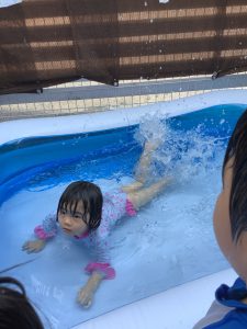 鼻を押さえていたお友だちも水に慣れてきたようで、今では鼻を押さえなくても出来るようになりました!