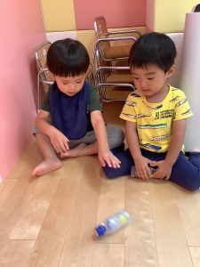 ペットボトルに飾りを入れているのですが、とても真剣な眼差しで見入っていました