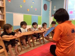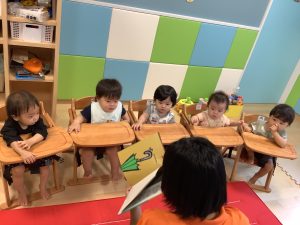 いちご組、りんご組、すいか組のお友だちも読み聞かせをすると