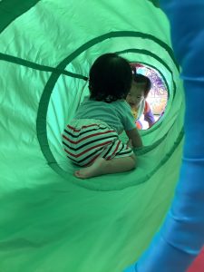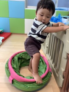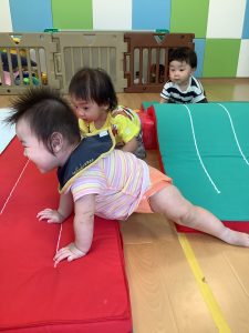 マットの坂道を歩いたり、ハイハイで登ったり身体をたくさん動かしてます![]()