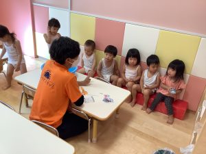 先生のお話をしっかり聞いています。何をするのかな?