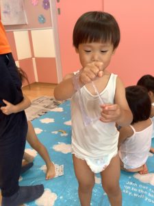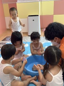 初めての感触に不思議そうな表情。みんな夢中で遊んでいました![]()