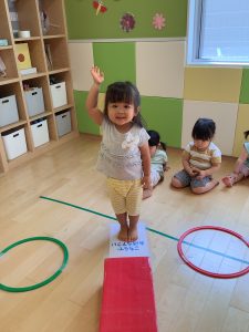 お名前を呼ばれてお返事も上手にできています。