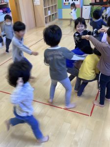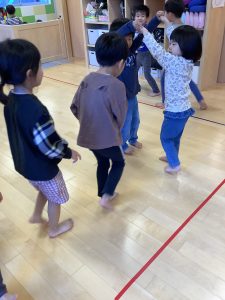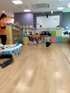 ピアノに合わせて「London Bridge is falling down…」と英語で歌いながらしました♪