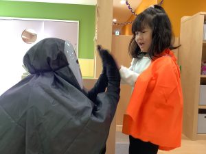 少しドキドキしながらも、頑張って覚えた「trick  or treat!」を言うことができました☺️