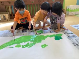 塗る場所を確認しながら上手に筆で塗っていました🖌✨