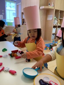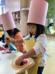 料理が完成するとお友だちや保育士に「どうぞ!」と上手にやり取りもしていました✨