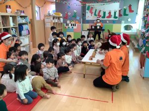 12月に入り、クリスマスにちなんだ絵本を見たり、園全体をクリスマス仕様にしたり…子どもたちも保育士もワクワクしていました![]()