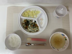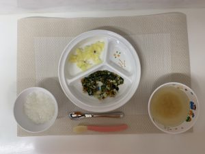 給食を保育室に届けると、「デザートある?」という、子どもたちのかわいらしい声が聞こえてきました。