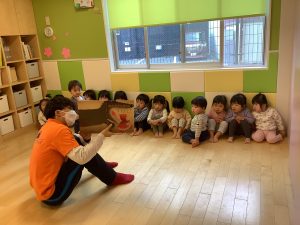 今回は、0、1、2歳児さんの合同での読み聞かせの様子です☺︎
