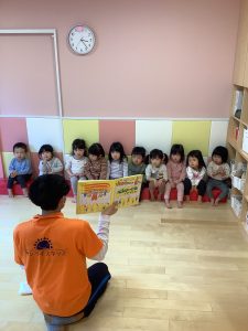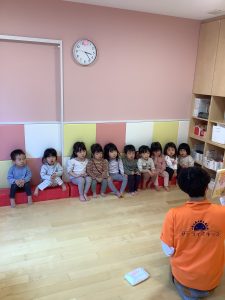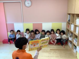 今日は、1、2歳児さんの合同での読み聞かせの様子です☺︎