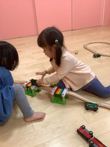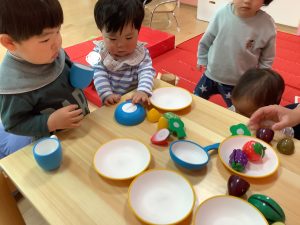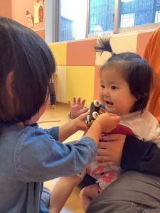 いちご組のお友だちはりんご組のお友だちの遊んでいる姿を真似して遊んでいましたよ🎶