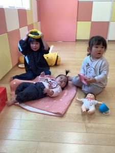新入園児さんが涙しそうになると使っていたお人形を持ってあやしてくれるお姉さんたちを発見