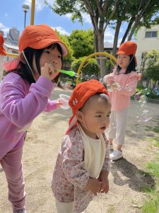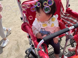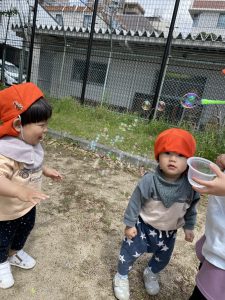シャボン玉に大興奮ないちご組さん、もも組さんでしたよ